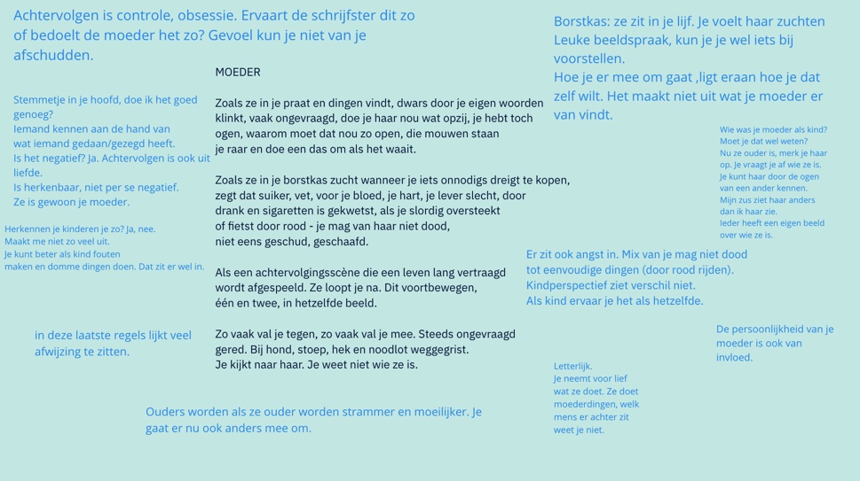 Interpretaties tijdens de workshop poëzie bij het gedicht ‘Moeder’ van Ester Naomi Perquin